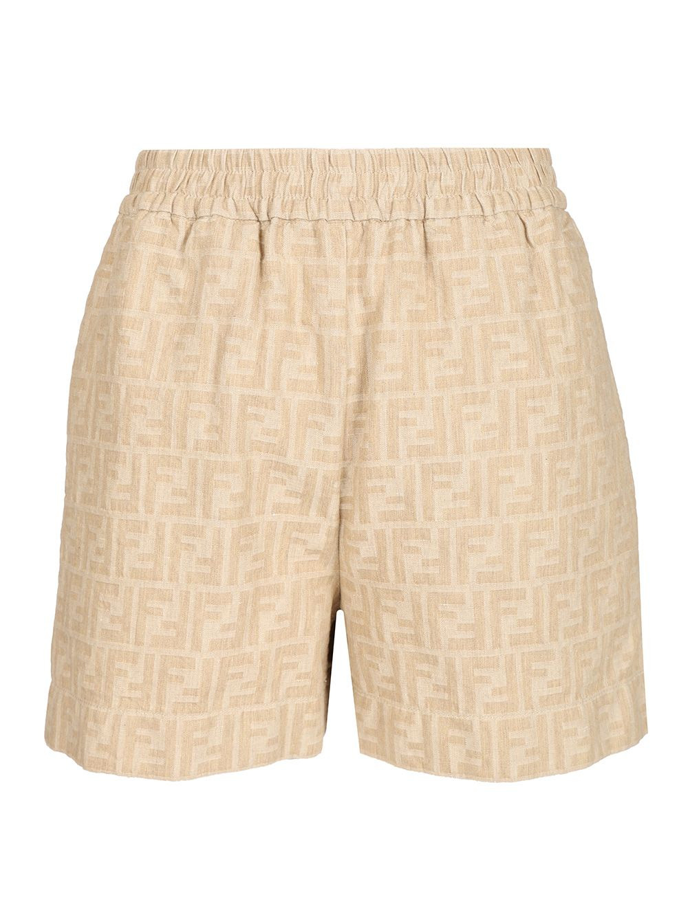 Fendi FF chambray denim shorts with elasticated waist and side pockets - Colour: Beige - Composition: 74%CO,26%LI - Country Of Manufacture: IT - MPN: FLP870ASMFF1SAZ