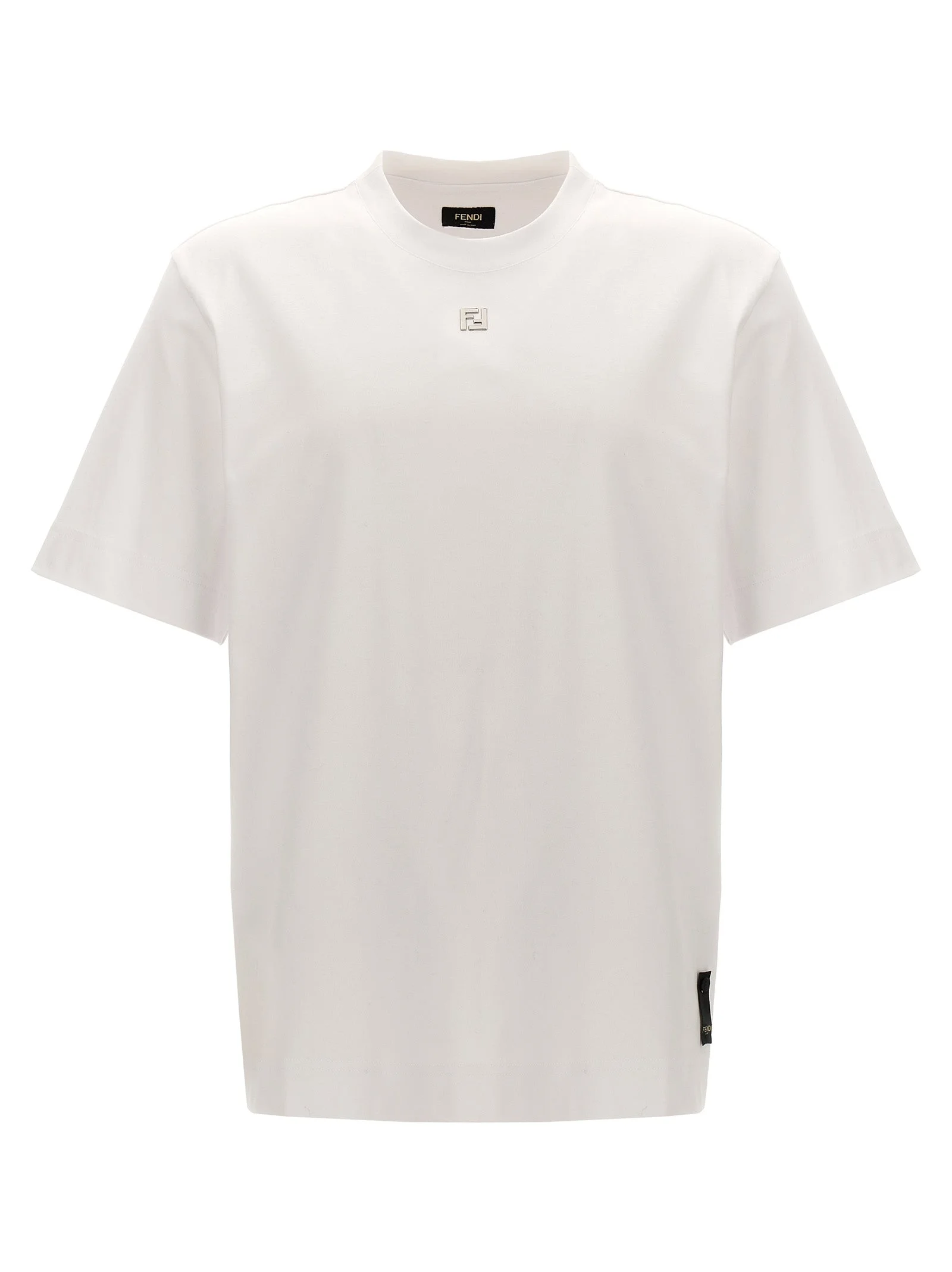 Cotton T-shirt with front metal 'FF' logo, crew neck, short sleeves. - Colour: White - Composition: 100% cotton - Country Of Manufacture: Italy - Dimension: true to size fit - MPN: FY0936ARYYF0QA0