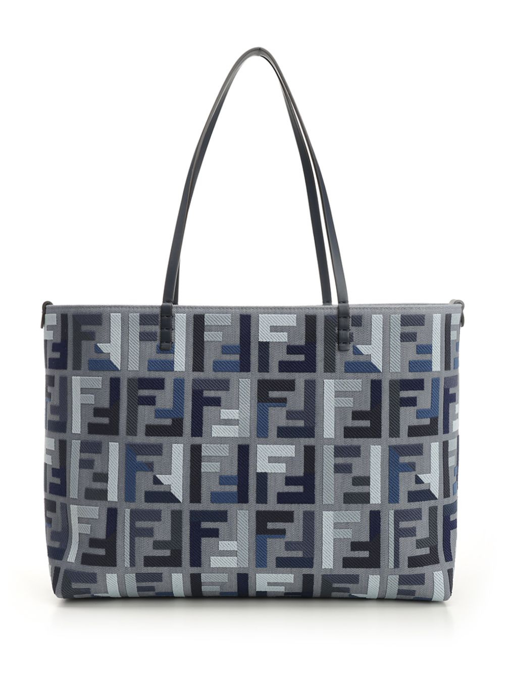 "Roll" large tote bag from Fendi, created in 1997 together with the Baguette and designed to be worn together. Reversible design, made of jacquard fabric in shades of blue with iconic FF chenille motif on the other. Removable internal zip pocket in leather and metal accessories with golden finish. - Colour: Blue - Composition: 39%PL,35%CO,25%VI,1%AF+100%VIT+Interno:50%CO,48%PL,2%AF - Country Of Manufacture: IT - Dimension: W.34 X H.31 X D.21 cm - MPN: 8BH425AV11F1LAZ
