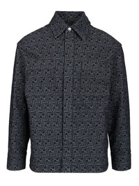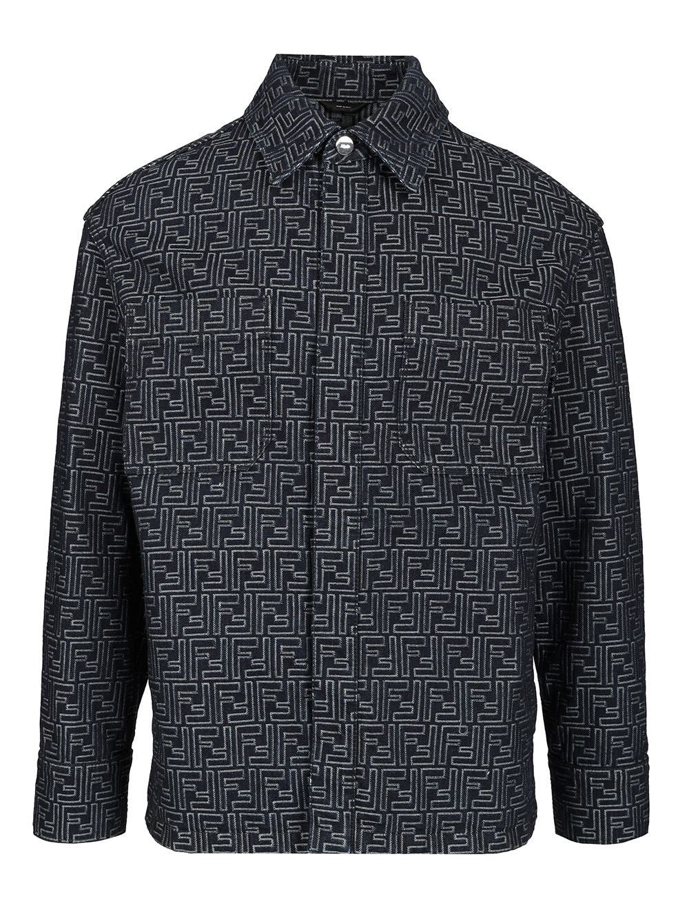 Long-sleeved straight-fit jacket. Pointed collar and slightly dropped shoulder. Patch pockets on the chest and side welt pockets. Snap button closure. Made of white denim fabric. Personalized with tone-on-tone Selleria stitching and embroidered FF logo on the left front pocket. - Colour: Blue - Composition: 100% cotton - Country Of Manufacture: IT - MPN: FW1321AUX4F0BUZ