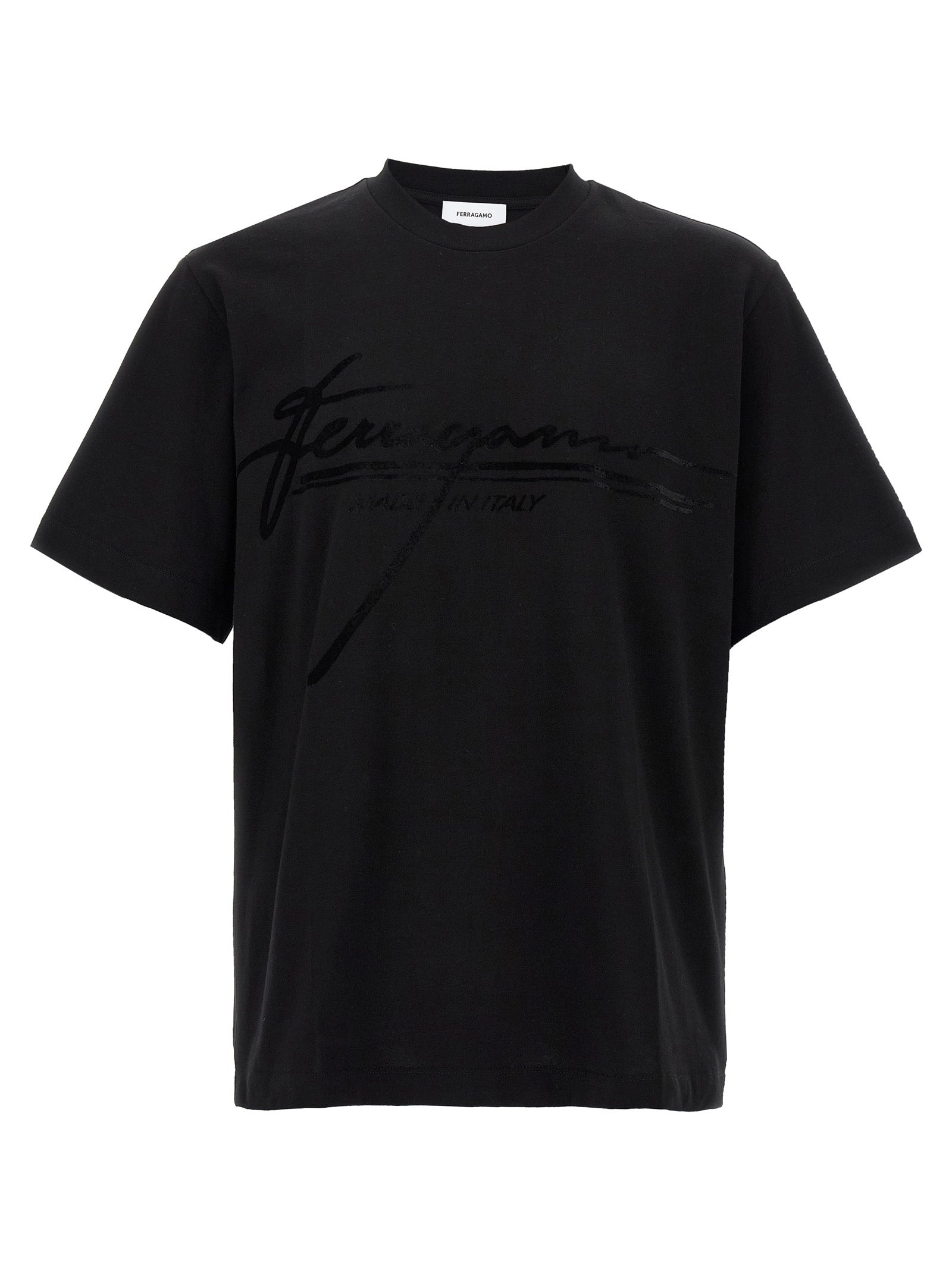 Compact jersey T-shirt, with tone-on-tone flocked 'Firma' print on the front, crew neck, and short sleeves. - Colour: Black - Composition: 100% cotton - Country Of Manufacture: Italy - Dimension: true to size fit - MPN: 786885BLACK