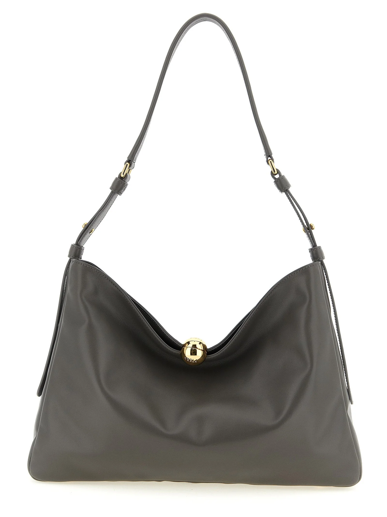 Large 'Furla Sfera Soft' shoulder bag in padded smooth nappa leather, magnet button closure decorated with ball hardware, front embossed logo, adjustable handle, rigid base with metal feet. - Colour: Gray - Composition: 100% calfskin leather (Bos Taurus) - Country Of Manufacture: Italy - Dimension: W 37 x H 25 x D 8 cm - MPN: WB01365BX31684283S