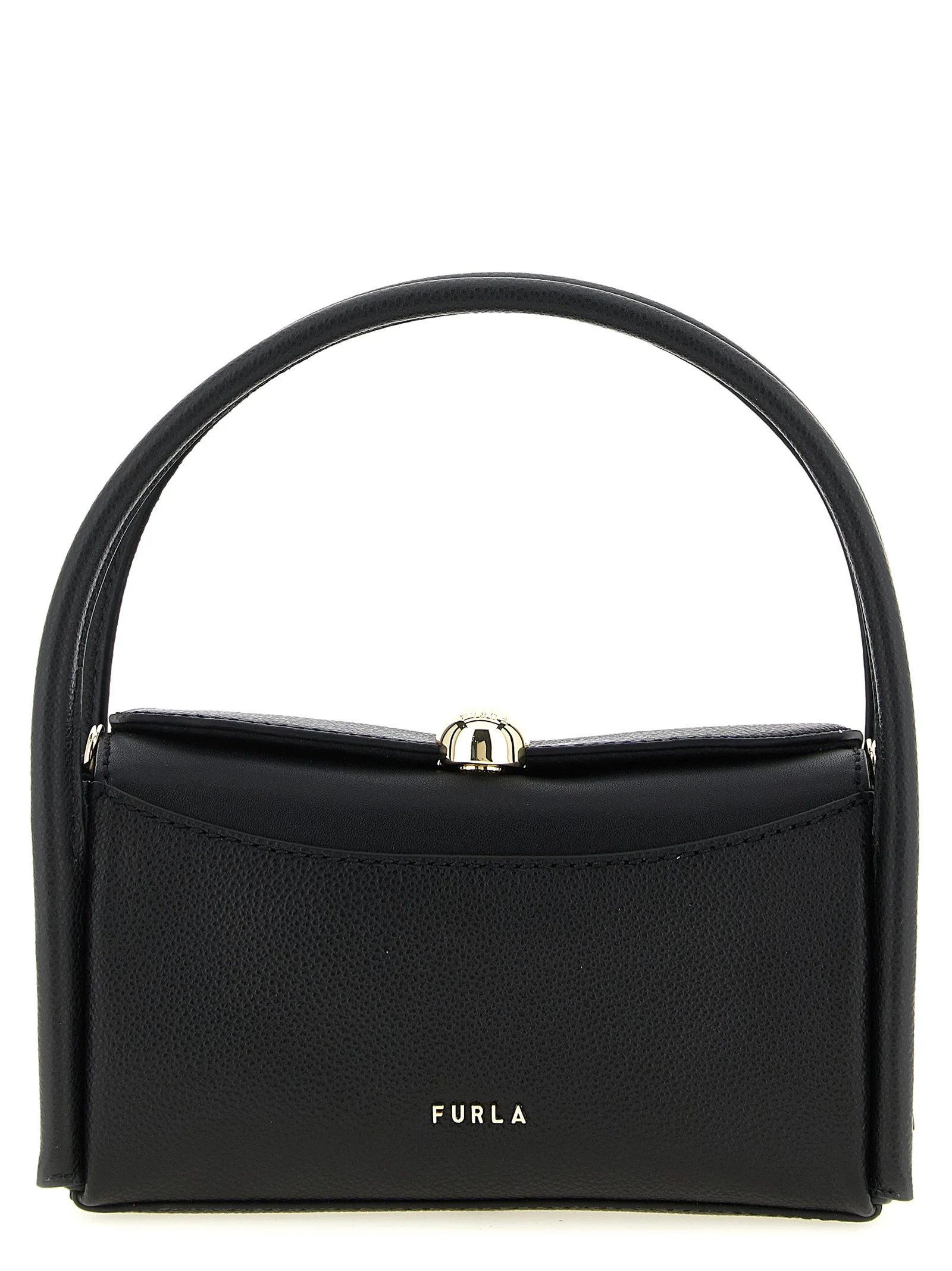 Boston Nicole' mini handbag in grain-effect print leather with double fixed handle, magnetic flap closure, front metal lettering logo, and adjustable and removable shoulder strap. - Colour: Black - Composition: 100% calfskin leather (Bos Taurus) - Country Of Manufacture: China - Dimension: W 18.5 x H 10 x D 6 cm - MPN: WE00893BX4296O6000