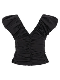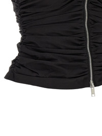 Black Ruched' stretch cotton top with front and back curls, V-neck, front zip closure, fluffy shoulder straps. - Colour: Black - Composition: 97% cotton, 3% elastane - Country Of Manufacture: India - Dimension: slim fit - EU size - MPN: A1040071099