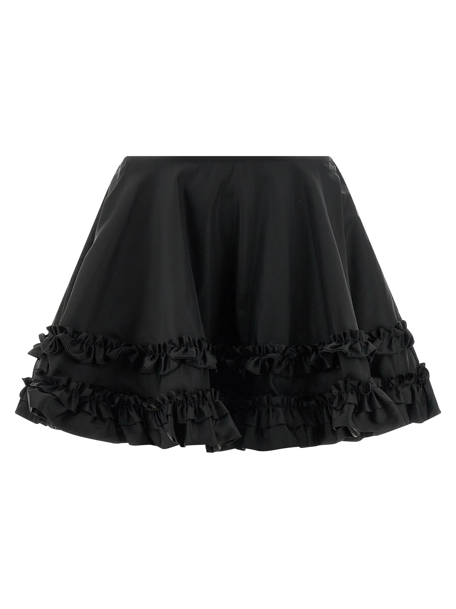 'Duchesse Nylon Mini Frill' water-repellent Duchesse nylon skirt with flared silhouette with ruffles and ruffles and side zip closure. SUSTAINABLE: Product made with recycled polyamide. - Colour: Black - Composition: 93% polyamide 7% polyurethane - Country Of Manufacture: China - Dimension: true to size fit - EU size - MPN: A1090079099