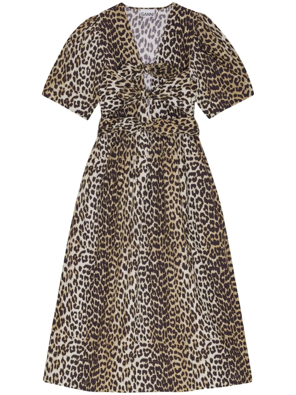 LEOPARD PRINTED COTTON TIE STRAP MIDI DRESS