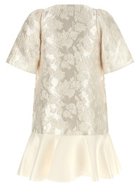 'Satin Cloque' jacquard mini dress, V-neck, slightly puff short sleeves, side zip closure, curled flounce on the hem. - Colour: White - Composition: 90% polyester, 10% polyamide - Country Of Manufacture: China - Dimension: True to size fitEU SIZING - MPN: A1030105135