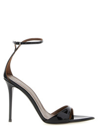 'Intrigo' patent leather sandals, pointed toe, adjustable ankle strap, stiletto heel, leather sole. - Colour: Black - Composition: 100% calfskin leather (Bos Taurus) - Country Of Manufacture: Italy - Dimension: EU WOMAN - Heel: 10.5 cm - MPN: I400005006