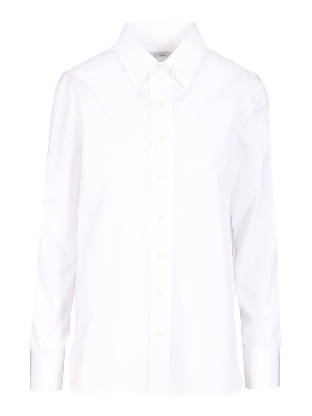 Cotton poplin shirt by Givenchy, with classic collar, small GIVENCHY Paris signature embroidered on the chest, button fastening and buttoned cuffs. - Colour: White - Composition: Main Material : 100 % COTTON - Country Of Manufacture: IT - MPN: BW61EL14M6100