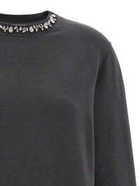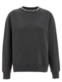 'Athena' sweatshirt in used-effect brushed cotton, crew neck with front crystal applique, long cuffed sleeves, and back metal logo. - Colour: Gray - Composition: 100% cotton - Country Of Manufacture: Italy - Dimension: true to size fit - MPN: GWP01223P0006726031860318