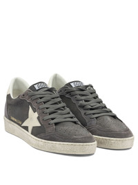 Golden Goose "Ball Star" sneaker with Nappa leather upper, low-top construction and silhouette inspired by 1980s sportswear designs. The construction incorporates a contrasting leather applied side star, suede back heel and suede detailing along the profiles. The shoe features visible stitching and a vintage treatment finish. - Nappa leather upper - Leather side star - Suede heel and inserts - Vintage treatment finish - Snea Kers lettering imprinted on the heel - Contoured insole - Rubber sole - Colour: Black - Composition: 100% leather - 100% rubber - Country Of Manufacture: Italy - MPN: GMF00117F00815760662