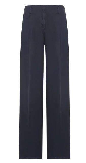 Women's pants in black cotton denim with a lived-in treatment