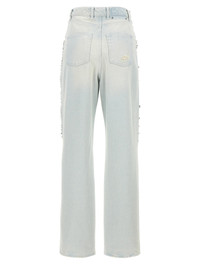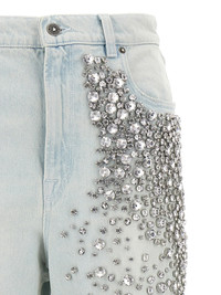 'Kim' cotton denim jeans with distressed details, crystal embellishment, zip and button closure, five pockets. - Colour: Light Blue - Composition: 100% cotton - Country Of Manufacture: Italy - Dimension: True to size fit - MPN: GWP00844P0006265010050100