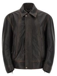 'Prince' leather bomber jacket with shirt collar, front zip closure, elastic waistband, long sleeves with cuffs and zip. - Colour: Multicolor - Composition: 100% ovine leather (Ovis Aries Aries) - Country Of Manufacture: Italy - Dimension: True to size fit - MPN: GMP02531P0023014024940249