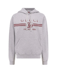 Hood with adjustable drawstring Logo print on the front Kangaroo pocket on the front Made in Italy 100% cotton SKU: 788771XJGKP1048 - Colour: GREY MELANGE/RED - Composition: FELTED COTTON MELANGE - Country Of Manufacture: ITALIA - MPN: 788771XJGKP1048