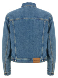 Delave effect cotton denim jacket, front lasered GG logo, button closure, long cuffed sleeves, pockets, back jacron logo tag. - Colour: Blue - Composition: 100% cotton - Country Of Manufacture: Italy - Dimension: true to size fit - MPN: 815625XDC6W4492