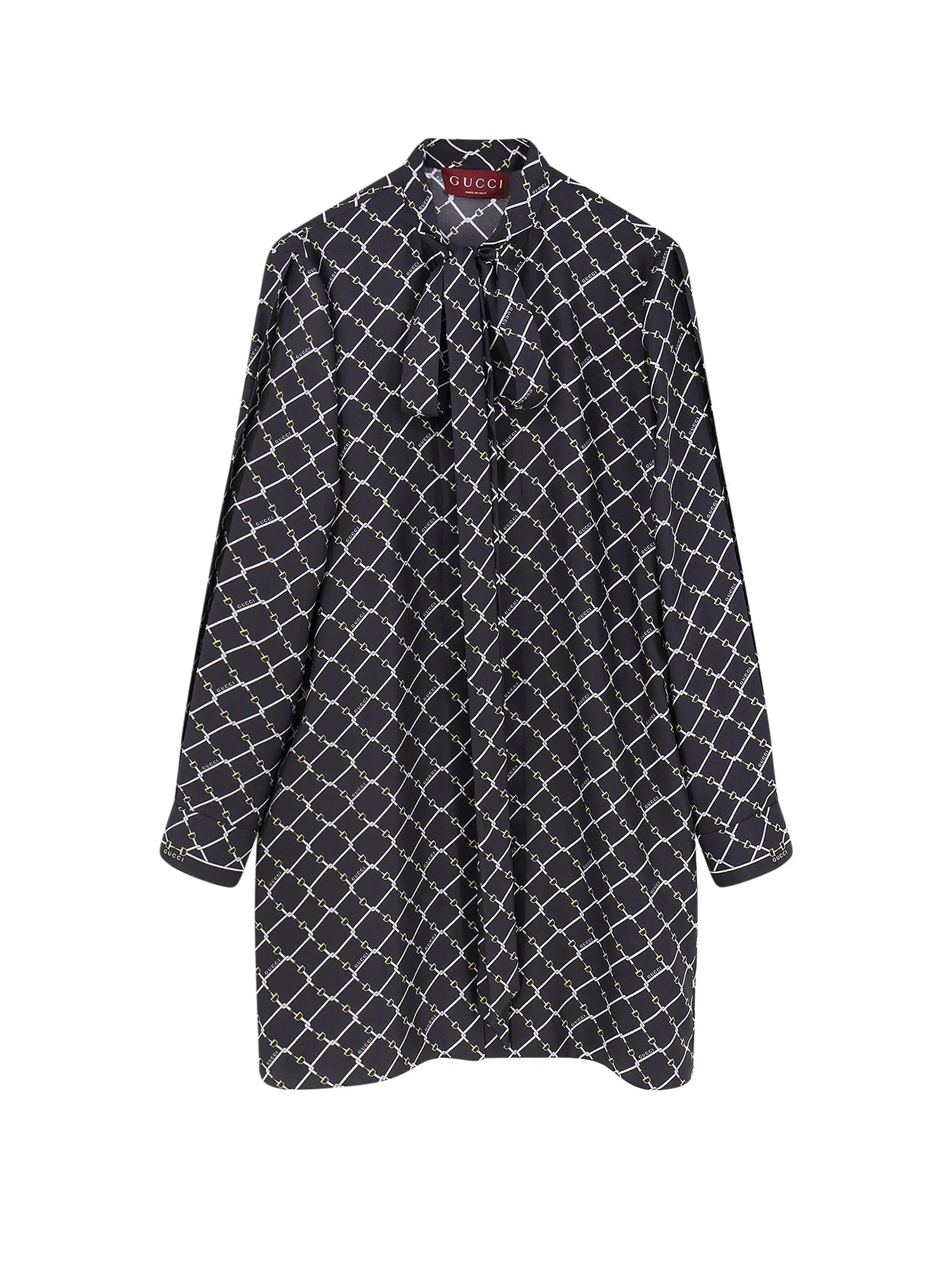 All-over Horsebit print Bow detail Button closure Long sleeves Unlined Made in Italy 100% Silk SKU:853056ZAUM11173 - Colour: BLACK WHITE MC - Composition: 100% seta - Country Of Manufacture: ITALIA - MPN: 853056ZAUM11173