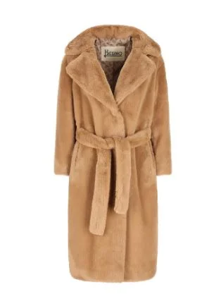 camel faux fur notched collar self-tie belt long sleeves - Colour: Brown - MPN: CA000586D124222157