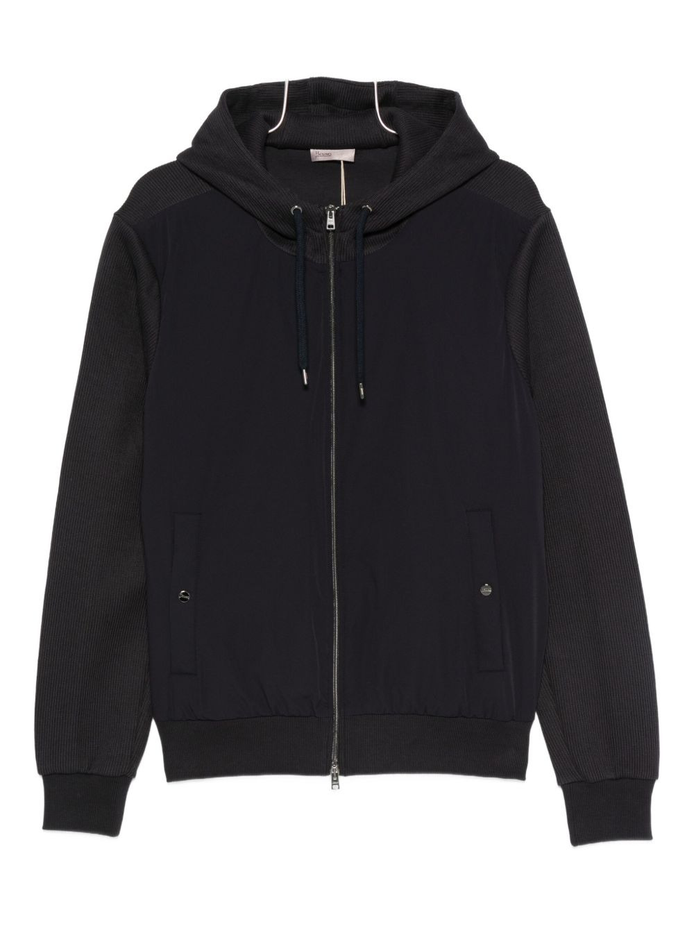 navy blue ribbed panels hooded neckline zip fastening long sleeves cotton-blend construction - Colour: Blue and green - Country Of Manufacture: Portugal - MPN: JC00021UR560209200