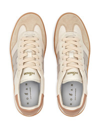 light beige logo applique lace-up fastening round toe flat rubber sole - Colour: Light and natural - MPN: HXW6470FB60UWS0RVH