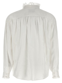 'Pamias' cotton blend voile top with ruffles, front asymmetric snap button closure, long cuffed sleeves, and asymmetrical collar. - Colour: White - Composition: 80% cotton 20% viscose - Country Of Manufacture: India - Dimension: true to size fit - FRENCH size - MPN: HT0001FCB3J04E20WH