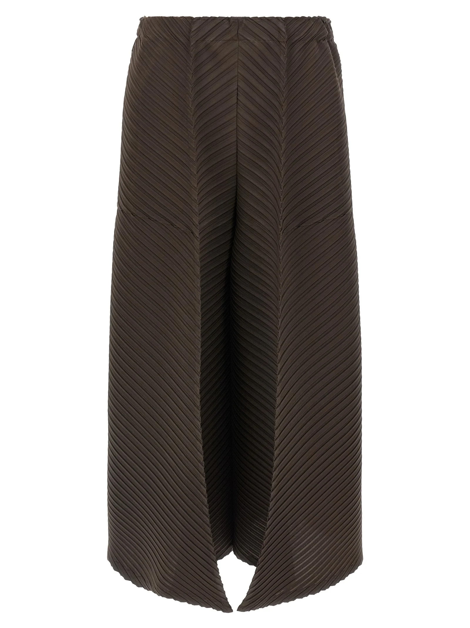 'Plaster Pleats Solid' pleated pants, crop model, wide leg, stretched pleat, elastic waistband, pockets, asymmetrical leg bottom. - Colour: Brown - Composition: 100% polyester - Country Of Manufacture: Japan - Dimension: true to size fit - MPN: IM66FF67045