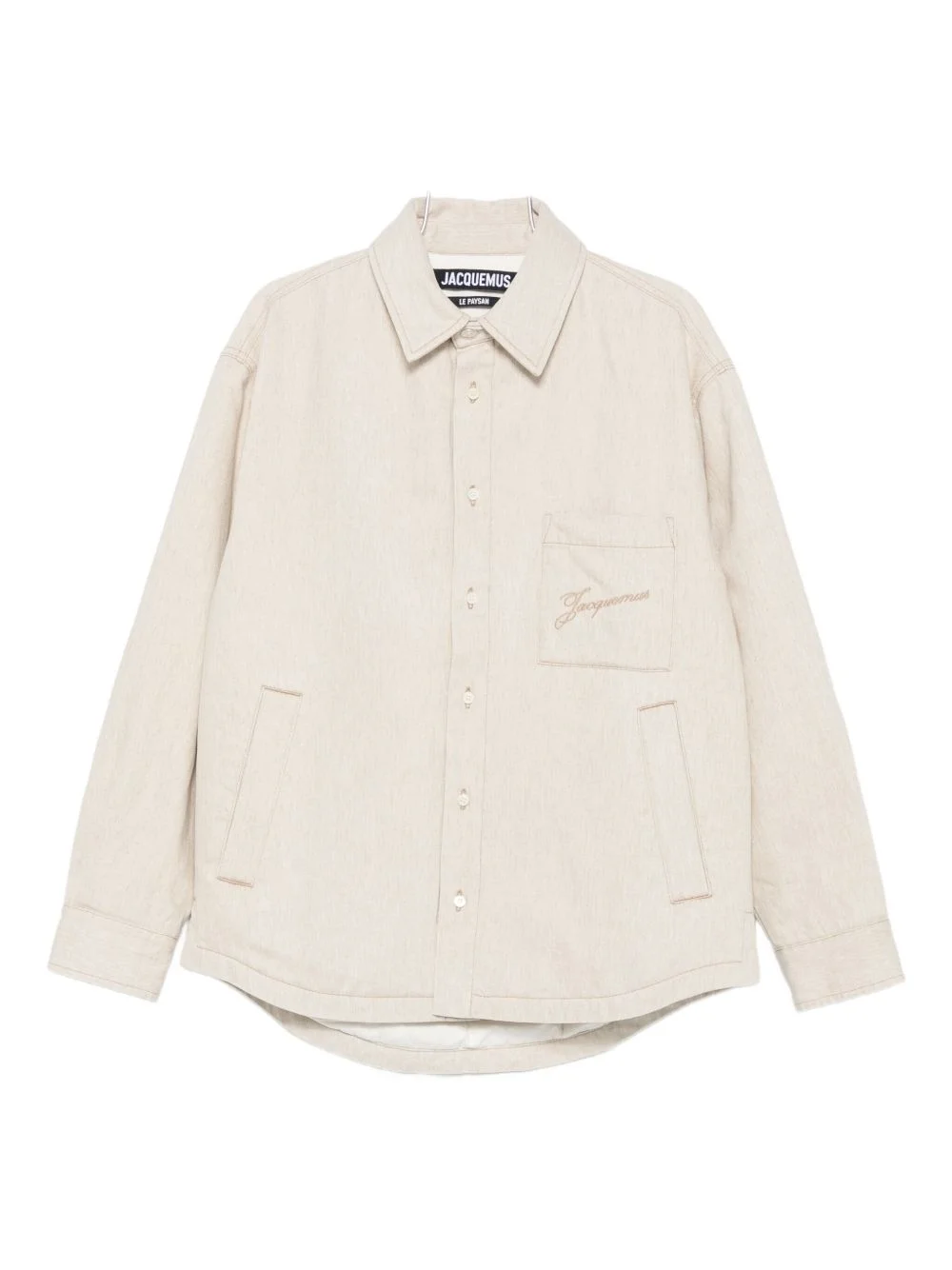 beige embroidered logo button fastening long sleeves patch pocket curved hemline - Colour: Light and natural - Country Of Manufacture: Portugal - MPN: OUM00115AD00044130