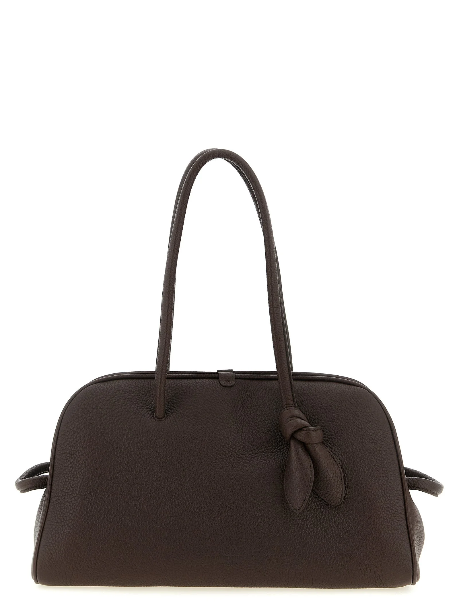 'Le Turismo' hammered leather shoulder bag in bowling style with front embossed logo, double fixed handle with tone-on-tone bow detail, top zip closure. Each leather is unique and has been carefully selected by a team of artisans. The model may have any imperfections or natural color variations. - Colour: Brown - Composition: 100% calfskin leather (Bos Taurus) - Country Of Manufacture: Italy - Dimension: W 39 x H 21 x D 17 cm - MPN: 25EBAU00417AC03A03880