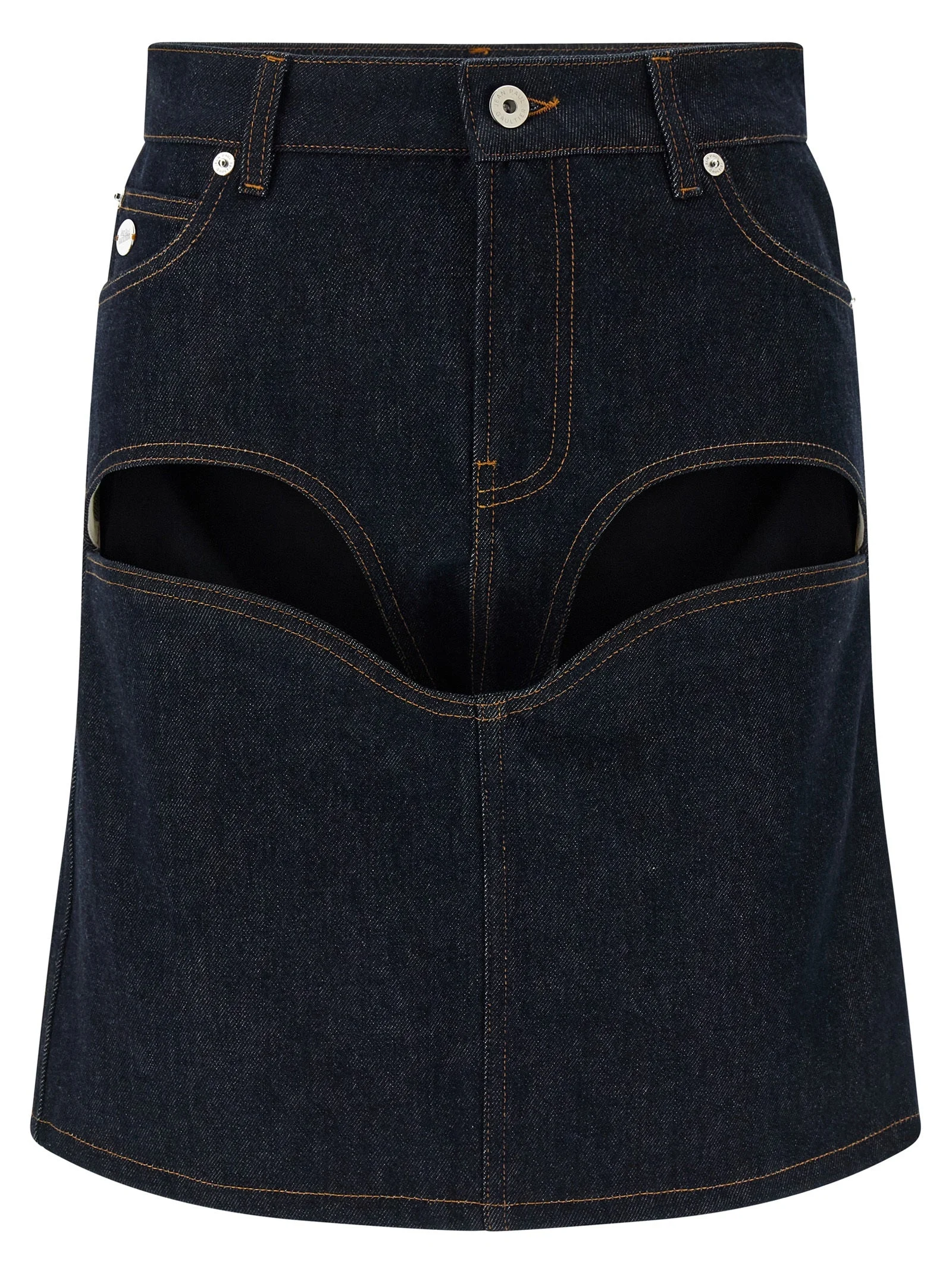 'Denim Mini Skirt With Cuts And Turn Up' cotton denim skirt with contrast stitching, front cut-out detail, integrated culottes, zip and button closure, five pockets, metal plaque with engraved logo, high waist. - Colour: Blue - Composition: 100% cotton - Country Of Manufacture: Italy - Dimension: true to size fit - MPN: 2601WSK024D02455