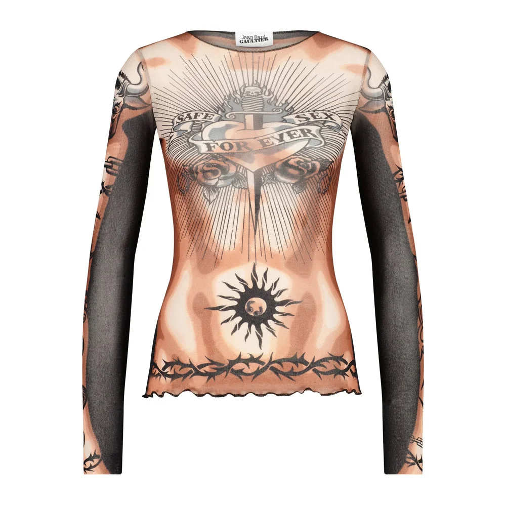 brown tattoo print round neck long sleeves overlock finish - Colour: Neutral, Black - Composition: Polyamide: 100.0% - Country Of Manufacture: Italy - MPN: TO456M026P63600