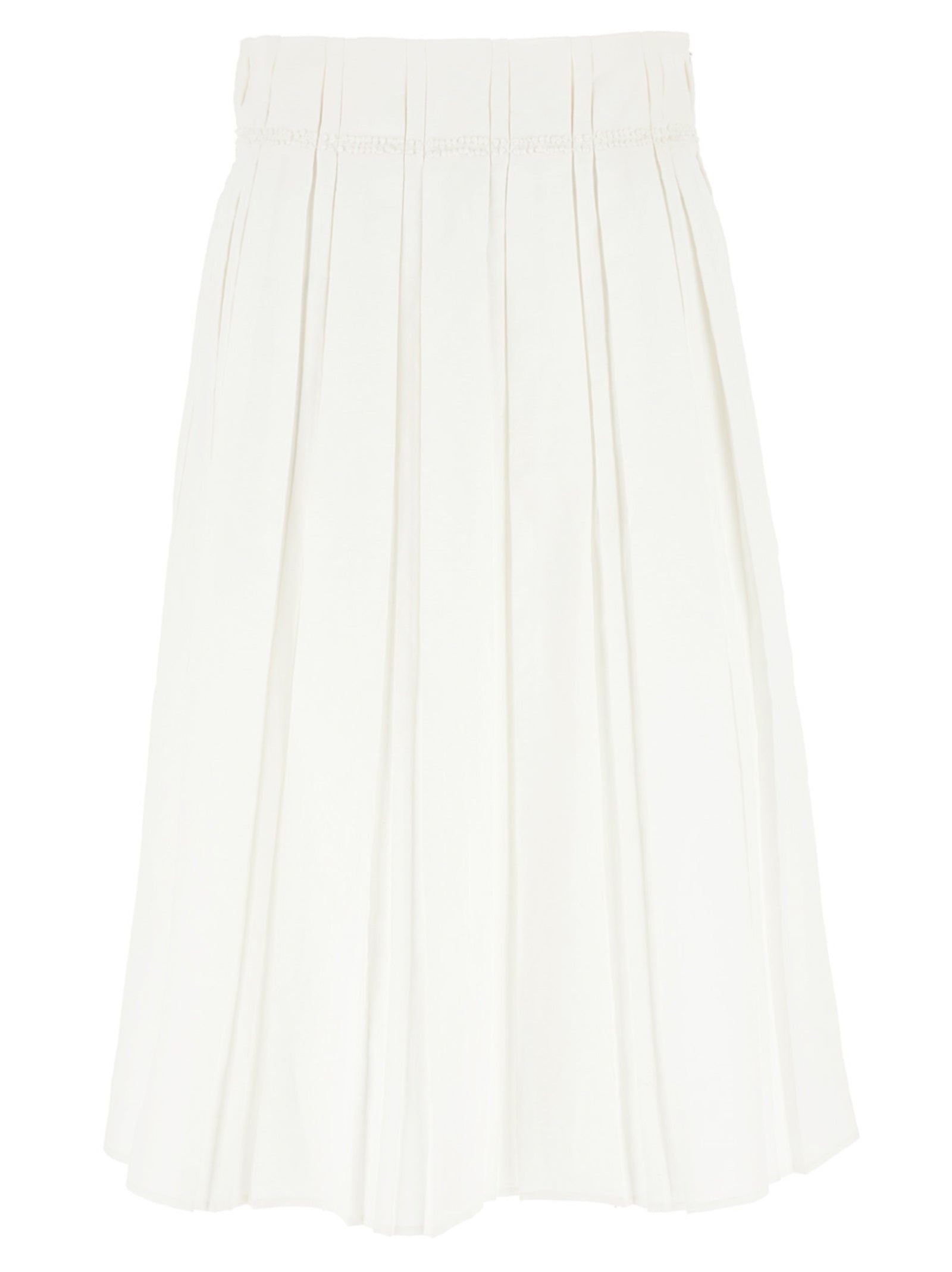 Pleated linen midi skirt, embroidered waist detail, side zip and hook closure. - Colour: White - Composition: 100% linen - Country Of Manufacture: Italy - Dimension: True to size fitGerman sizing - MPN: J02MA0256J60001100