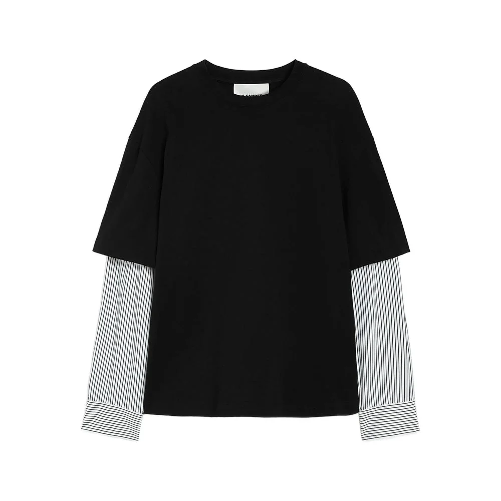 black cotton striped under sleeves crew neck logo tag double-layer effect - Colour: Black, White - Composition: Cotton: 100.0% - Country Of Manufacture: Italy - MPN: J20256J22GC0235001