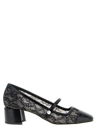 'Elisa' pumps in semi-transparent lace effect mesh with toe and patent leather details, strap with pearl detail, square toe, wide heel, leather sole. - Colour: Black - Composition: 47% tx 20% lh 20% cy 5% sa 4% me 4% pt - Country Of Manufacture: Italy - Dimension: EU WOMAN - Heels: 4.5 cm - MPN: ELISA45DYJBLACKBLACK