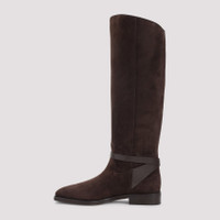 Lawton Knee Boot Flat Chocolate Suede and Calf Leather Knee High Boots