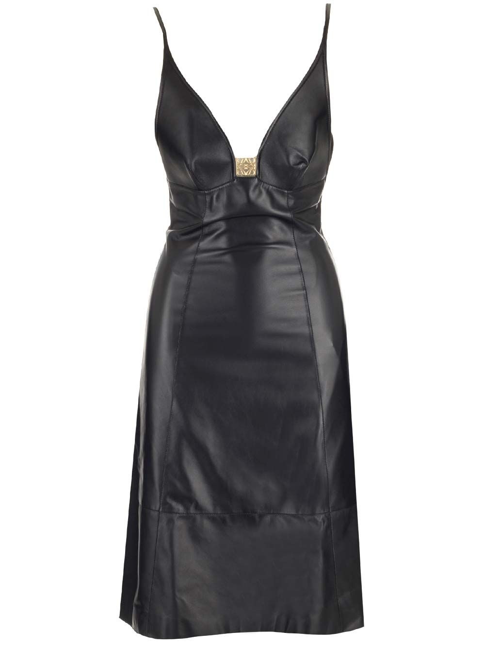 Anagram dress from Loewe in satin nappa with spaghetti straps that cross at the back - Colour: Black - Composition: Exterior: 100.0% CORDERO-LAMBSKIN Interior: 100.0% SEDA-SILK - Country Of Manufacture: ES - MPN: S540Y53L331100