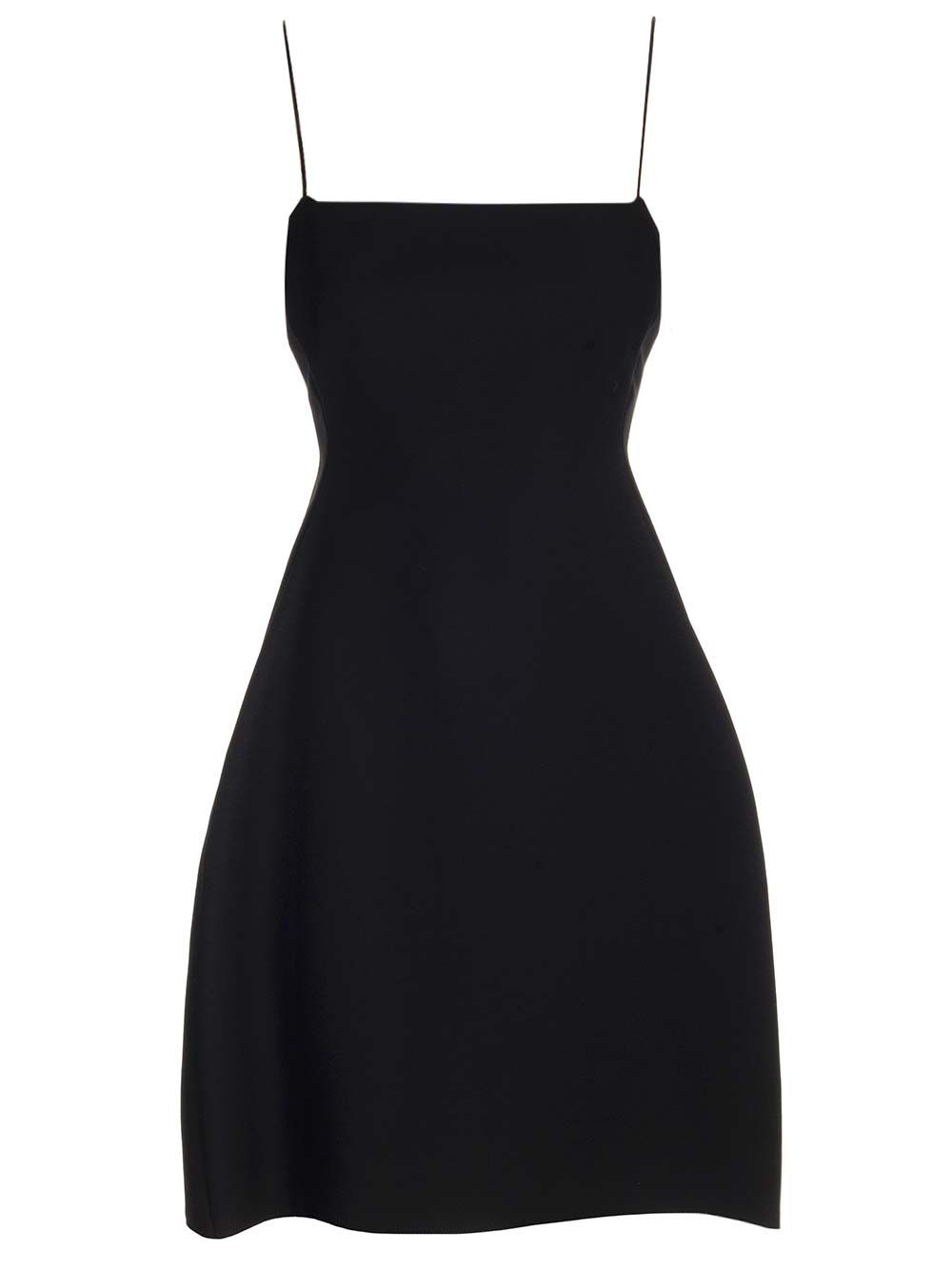 Black compact silk and wool crepe dress from Loewe, featuring a regular fit, a knee length, fitted and flare silhouette, thin straps, invisible rear zip fasteningLoewe Anagram embossed on the inner facing. - Colour: Black - Composition: Exterior: 54.0% SEDA-SILK 46.0% LANA-WOOL Interior: 45.05% VISCOSA-VISCOSE 15.0% CORDERO-LAMBSKIN 39.95% CUPRO-CUPRO - Country Of Manufacture: IT - MPN: S540Y09XJ71100