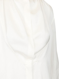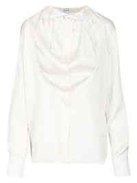Blusa in raso di seta di Loewe, lavato leggero con scollo regolabile con coulisse, vestibilita rilassata, lunghezza standard, chiusura con bottoni nascosti sul davanti, polsini con bottoni e ricamo Anagram applicato sul retro. - Colour: White - Composition: Exterior: 80.0% SEDA-SILK 5.0% POLIESTER-POLYESTER 15.0% ALGODON-COTTON - Country Of Manufacture: IT - MPN: S359Y05XFH2100