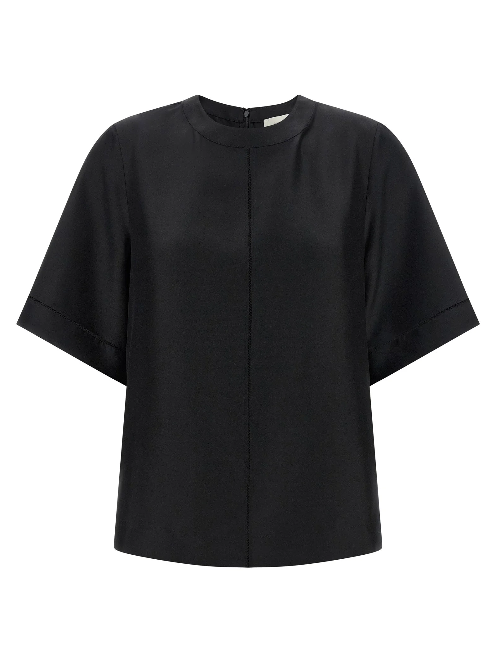 'Havana' silk twill top with lace stitch inserts, crew neck, back zip closure, wide short sleeves, side slits. - Colour: Black - Composition: 100% silk - Country Of Manufacture: China - Dimension: Comfort fit - MPN: HAVANABLACK