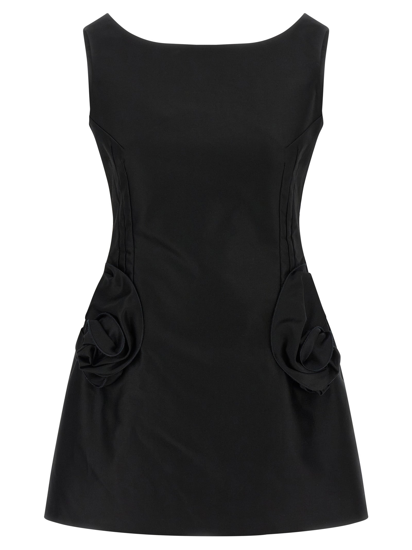 '04' cotton mini dress, pockets with 3D floral decoration, square neckline, sleeveless, pince, back zip closure, silk lining. - Colour: Black - Composition: 100% cotton - Country Of Manufacture: Poland - Dimension: true to size fit - FRENCH size - MPN: 127725BLACK