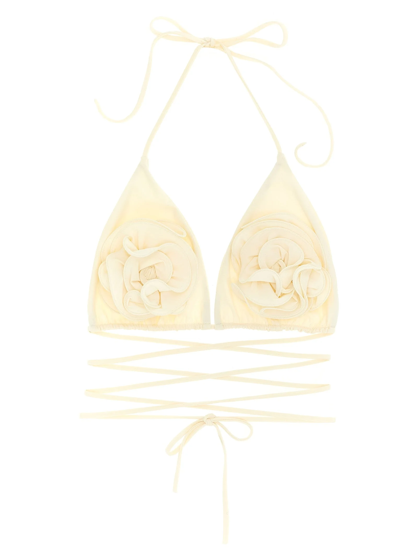 'RE22' triangle bikini top with knotted sliding laces, front floral applique. - Colour: White - Composition: 75% polyamide, 25% elastane - Country Of Manufacture: Italy - Dimension: True to size fitFrench sizing - MPN: 821321CREAM