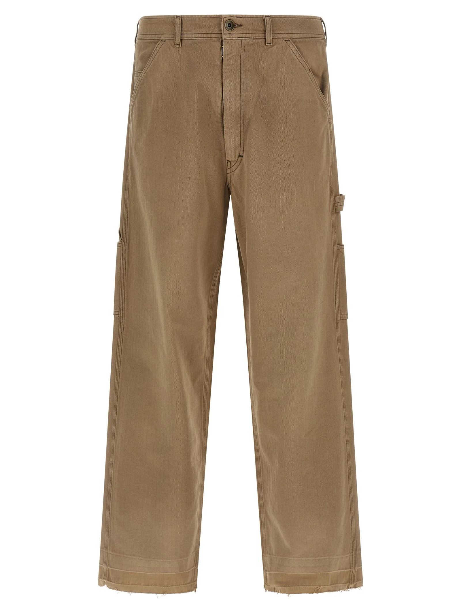 Workwear pants in herringbone cotton canvas, wide and straight leg, front zip and button closure, five pockets, leg bottoms with raw cut hem and trompe l'oeil turn-up crease, 'Four stitches' at the back. - Colour: Beige - Composition: 100% cotton - Country Of Manufacture: Italy - Dimension: true to size fit - MPN: S50LA0242M30024964