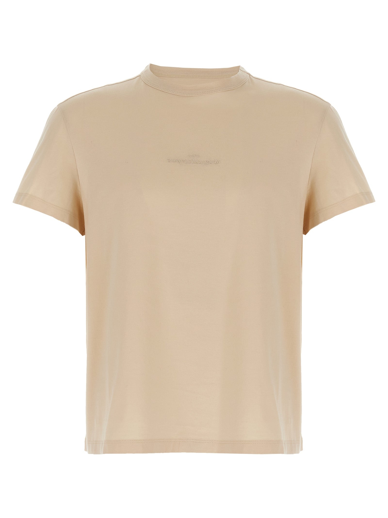 Cotton T-shirt, embroidered tone on tone 'Maison Margiela Paris' logo on the front, crew neck, short sleeves. - Colour: Beige - Composition: 100% cotton - Country Of Manufacture: Romania - Dimension: true to size fit - MPN: S30GC0701S22816106