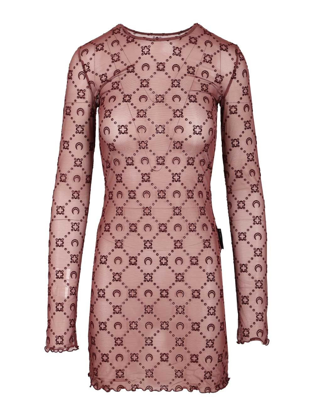 Moonogram Mesh Flock Ls Mini Crewneck Dress Dresses Violet