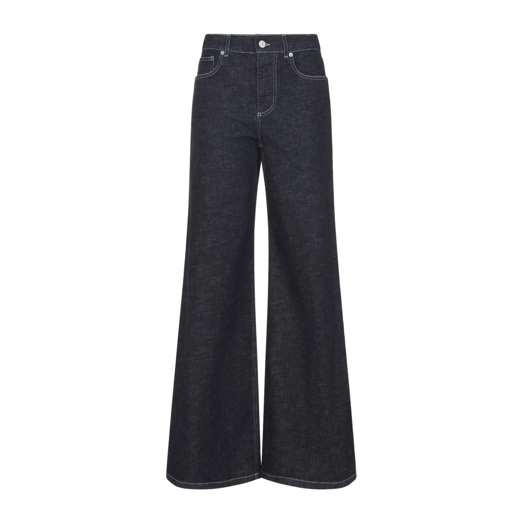 DEEP BLUE STRETCH DENIM WIDE-LEG JEANS