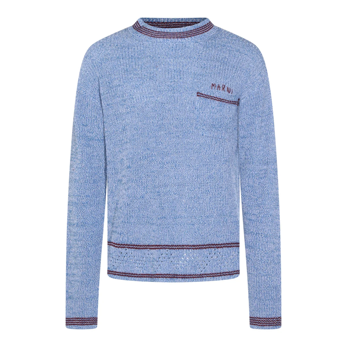 BLUE MOULINÉ COTTON SWEATER WITH MARNI MENDING