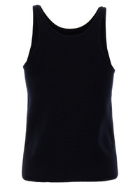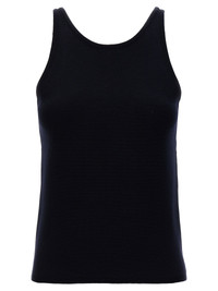 Stretch wool knit top, crew neck, thin straps. - Colour: Blue - Composition: 79% virgin wool 19% polyamide 2% elastane - Country Of Manufacture: Romania - Dimension: true to size fit - MPN: ALFEO005