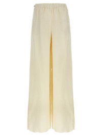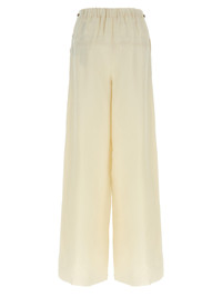 'Onore' pants in washed linen and silk twill, high waist model with wide leg, elastic waistband with metal eyelets and drawstring on the sides, pockets. - Colour: White - Composition: 60% flaxlinen 40% silk - Country Of Manufacture: Italy - Dimension: true to size fit - MPN: 2511131112600003