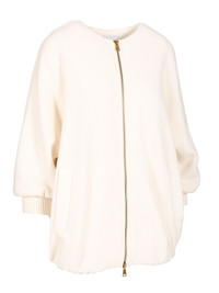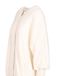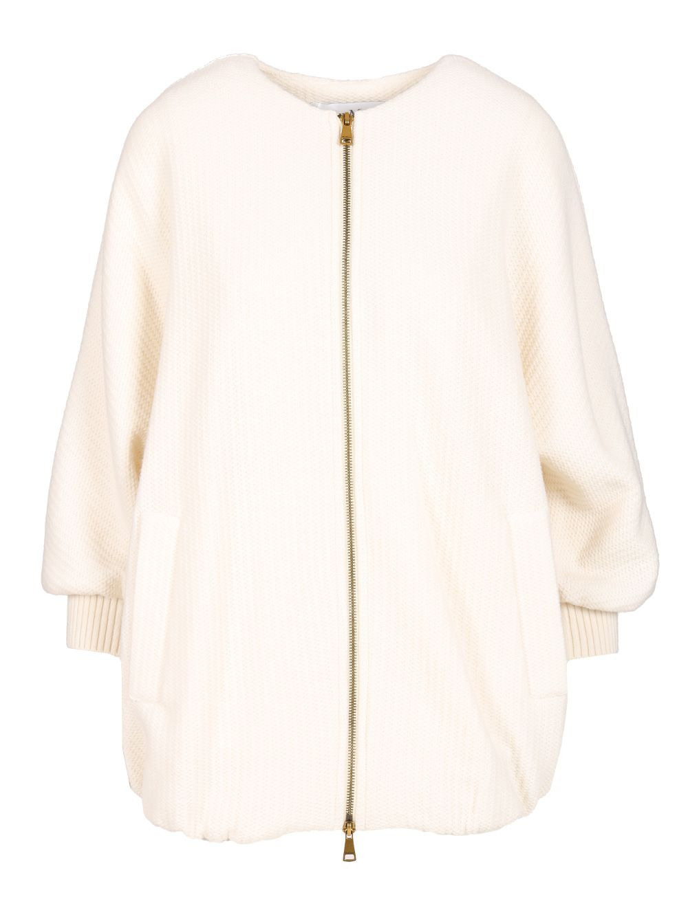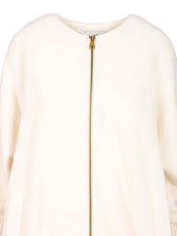 Wool and cashmere knitted jacket by Max Mara, with ample volume and wide kimono sleeves, double-slider zip front fastening, welt pockets on the sides, stretch ribbed knit cuffs, gathered edge on the bottom and leather logo tag on the back of the neck. - Colour: White - Composition: fabric 93% Virgin wool Ovis aries aries, 07% Cashmere Capra hircus hircus CINA - Country Of Manufacture: RO - MPN: 2521916061600121001