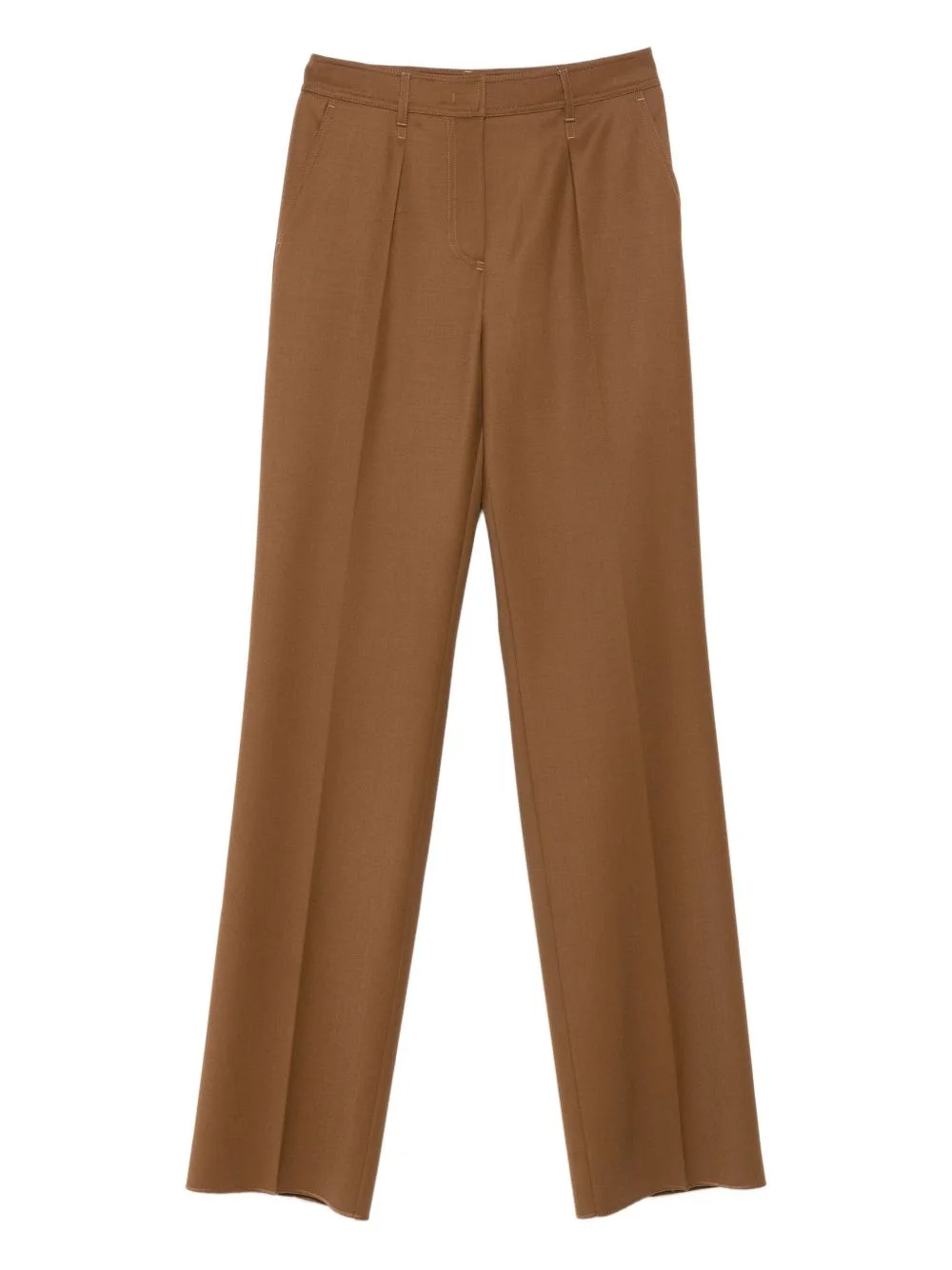 light brown belt loops pleat detail straight leg concealed front fastening two side slash pockets - Colour: Brown - Composition: 100% Wool - Country Of Manufacture: Italy - MPN: 21136032600004