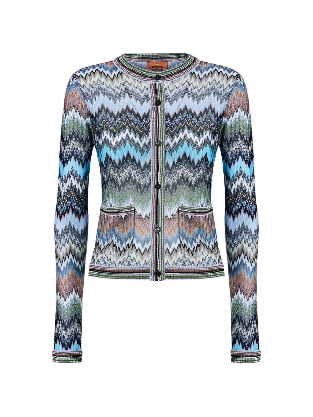 white/multicolour chevron pattern round neck front button fastening front pockets long sleeves The item you receive may differ slightly from the item photographed. This is due to the artisanal nature with which all Missoni products are constructed. - Colour: MULTICOLOR - Composition: 100%Viscose - Country Of Manufacture: Italy - MPN: DS26SM0CBR014TS91RM